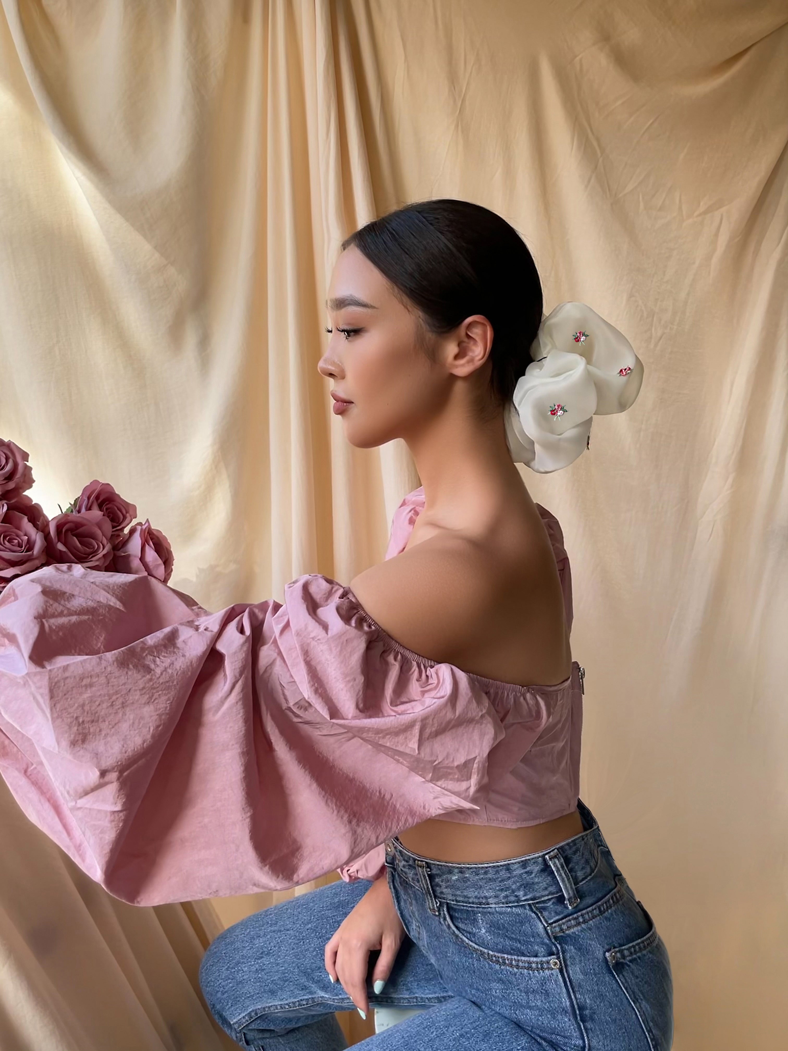 Add a burst of charm to your look with our Voluminous Hair Scrunchie adorned with delicate pink and red flowers. Handmade from airy cream organza, this scrunchie is designed to give your hairstyle extra fullness while remaining lightweight and gentle on your hair. The vibrant floral accents create a romantic, eye-catching detail, perfect for dressing up casual outfits or complementing special occasion styles. Whether worn in a high ponytail, bun, or on your wrist, this scrunchie blends elegance with everyday practicality. A beautiful accessory that combines comfort, volume, and style in one thoughtful handmade piece.