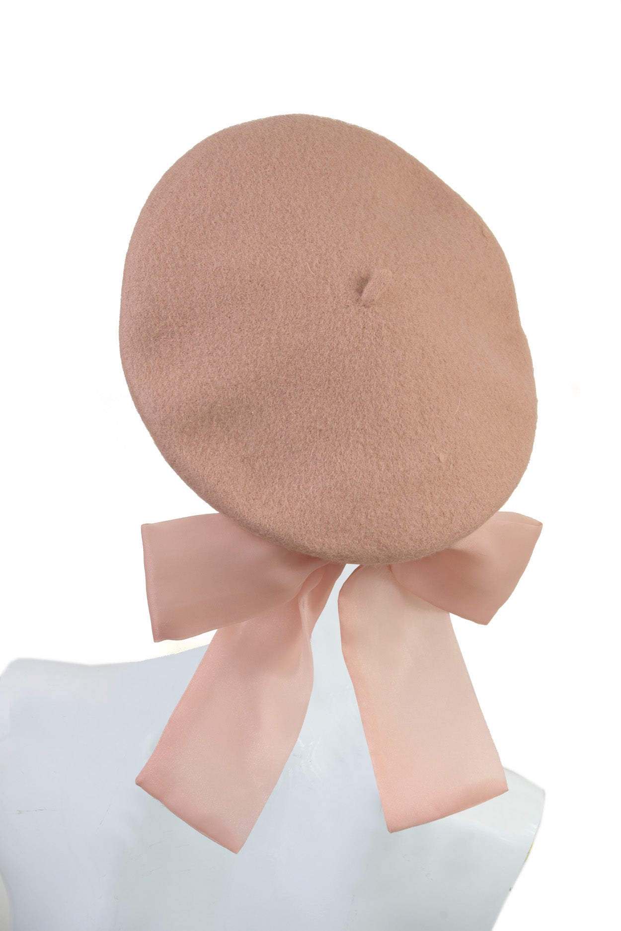 This dreamy salmon pink beret features a matching handmade organza bow at the back, adding a soft and feminine touch Crafted from 100% wool, this beret provides warmth and comfort while maintaining a luxurious feel. The 100% organza bow is delicately handmade, showcasing fine craftsmanship and adding a light, airy elegance to the look. Perfect for lovers of coquette fashion or vintage-inspired styles, this beret effortlessly brings a chic Parisian flair to any ensemble. Its timeless design and subtle color make it a versatile accessory, ideal for elevating your everyday style or adding a refined touch to special occasions.