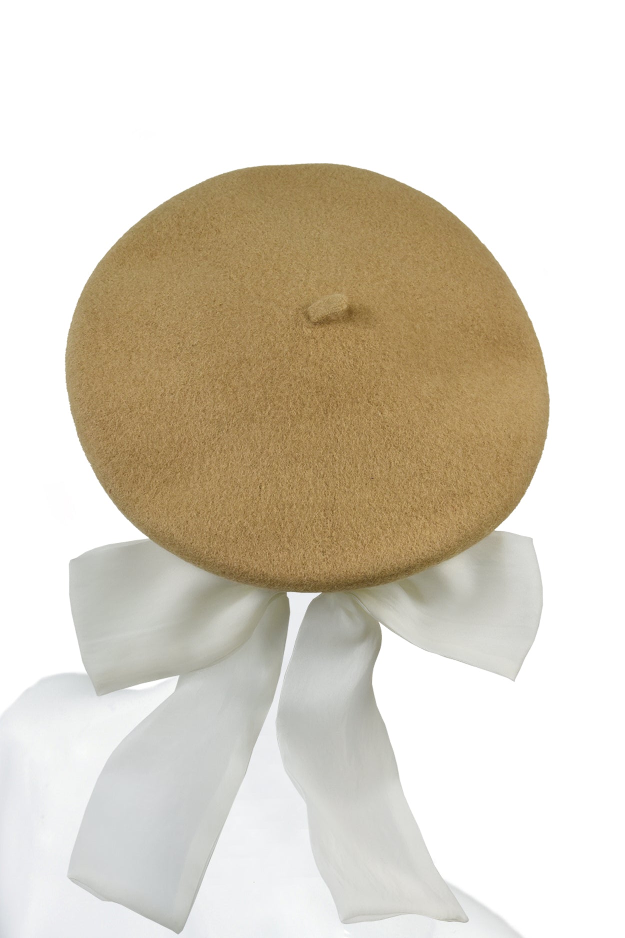 This elegant camel beret, part of the Sacre Coeur collection, is a perfect fusion of classic style and sophistication. Crafted from 100% high-quality wool, it promises warmth and comfort for every season. The off-white handmade organza bow at the back adds a soft, feminine touch that beautifully contrasts with the rich camel hue. The subtle beige bow enhances the beret’s timeless charm, making it an effortless accessory to complement both casual and formal outfits. Whether you're dressing up for a special occasion or adding a refined touch to your everyday wear, this beret is the ideal choice.