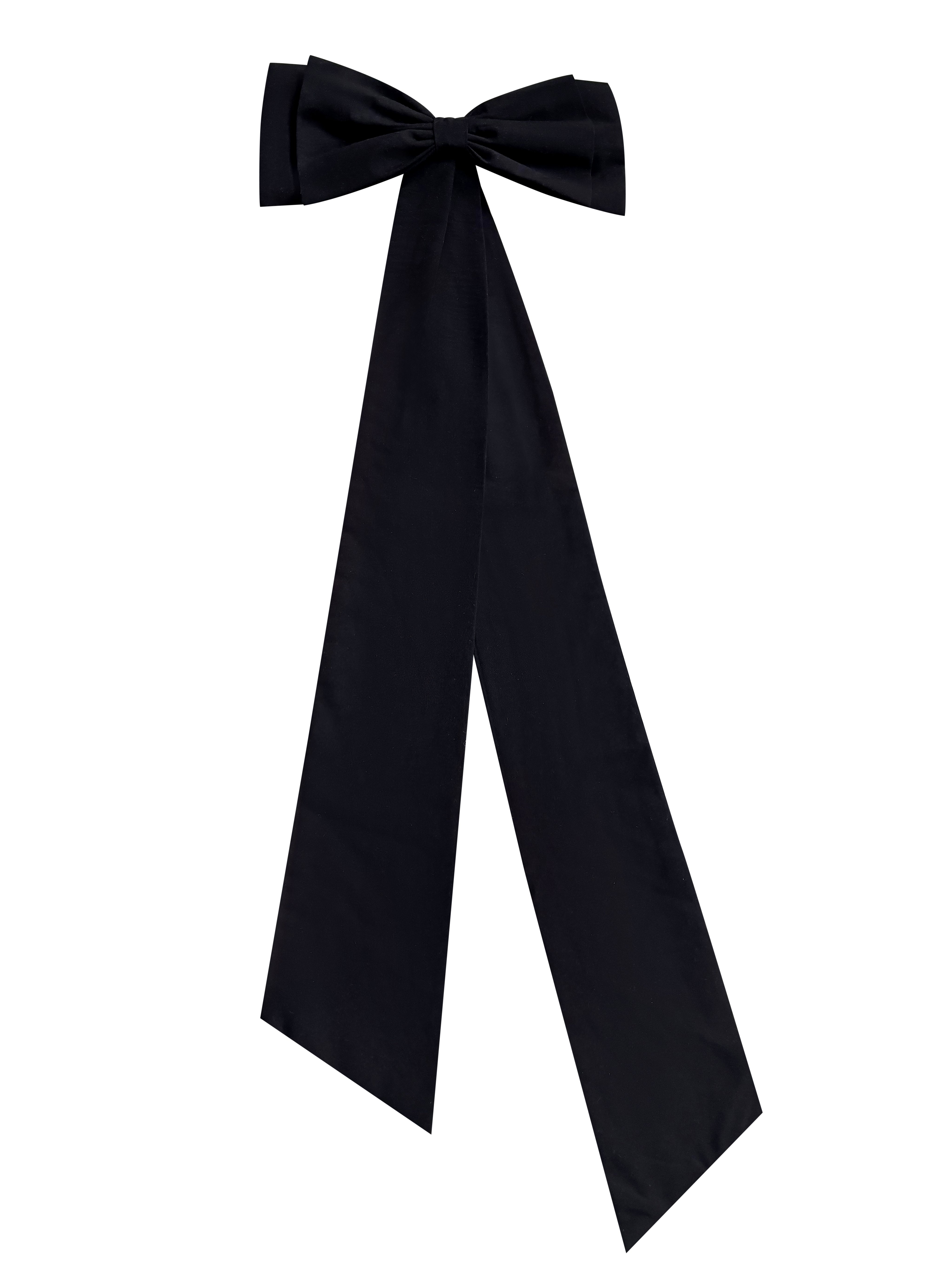 Its extra long tails flatters a variety of looks from a sleek ponytail to a romantic half-up style while the matte cotton finish keeps it modern and versatile. Whether worn casually during the day or as a standout piece for evening occasions, this bow adds instant polish and personality.