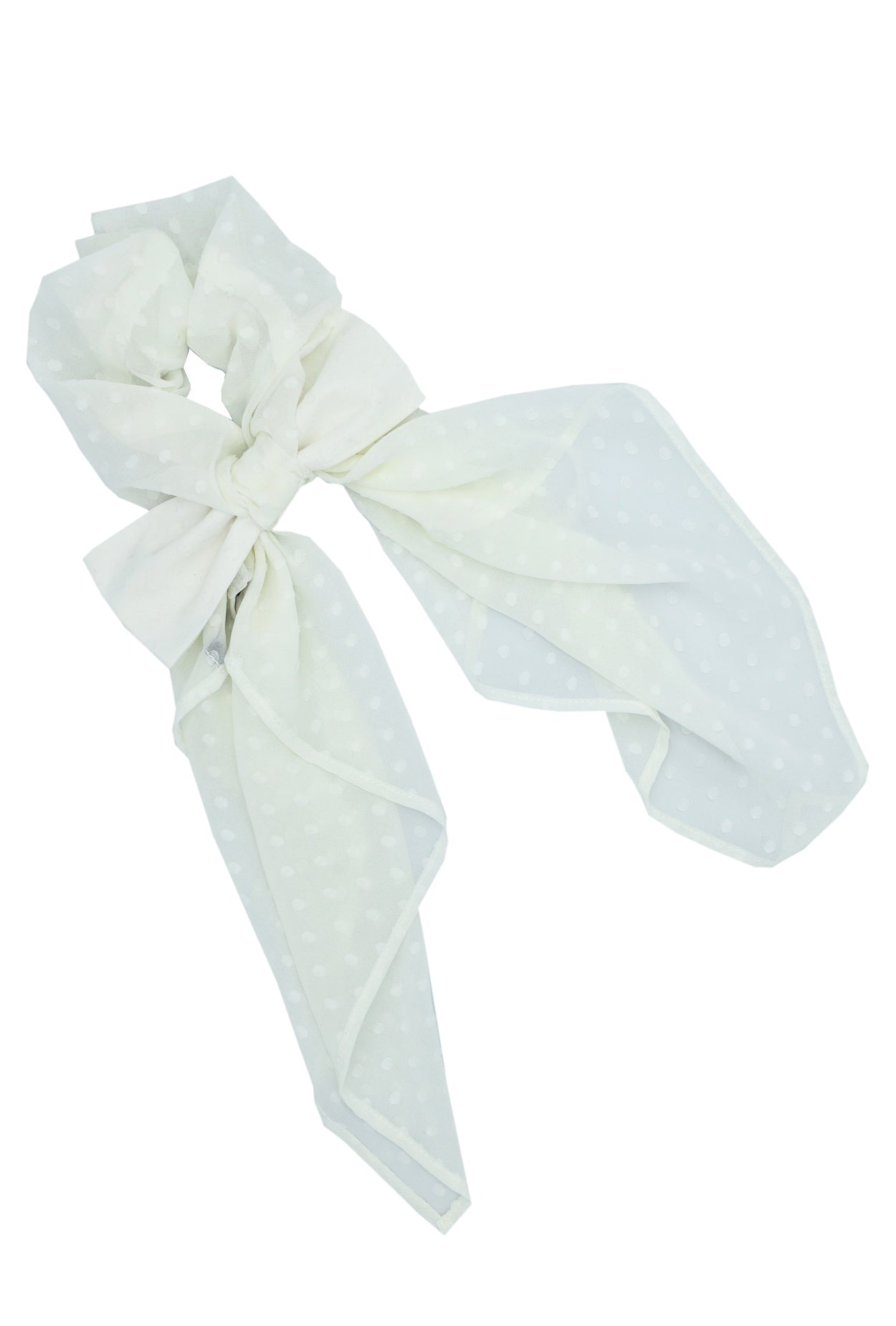 Elastic foulard blanc avec noeud. Imprimé petit poids blanc.