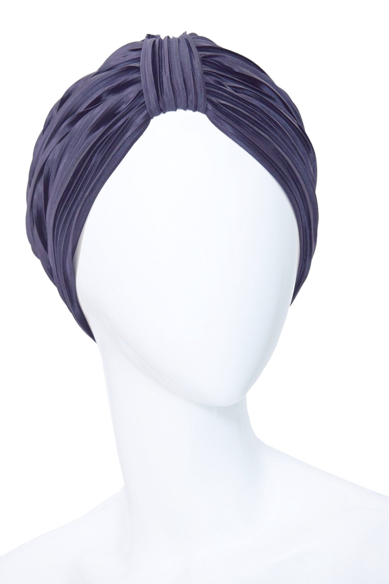 Dark blue turban made of stretch pleated Satin.