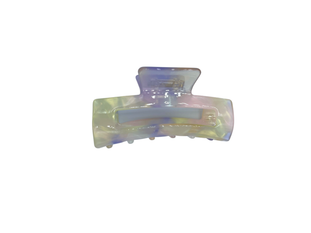Pastel yellow and lilac rectangle claw clip.