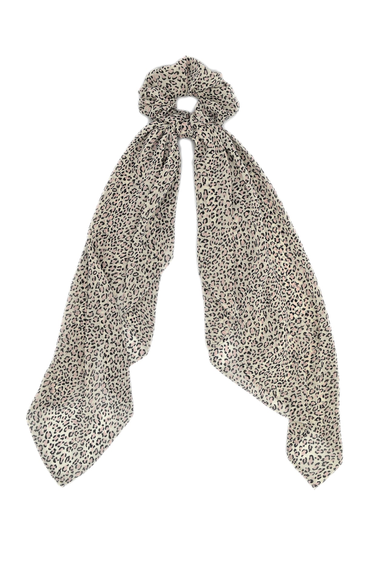Pink cheetah print faux scarf scrunchie.